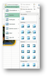 Estas herramientas permiten asignar un formato predefinido a la imagen, este formato puede ser con efectos de sombra, iluminación, marcos, etc. Pasando el ratón por encima de las opciones vemos el resultado a “tiempo real”,